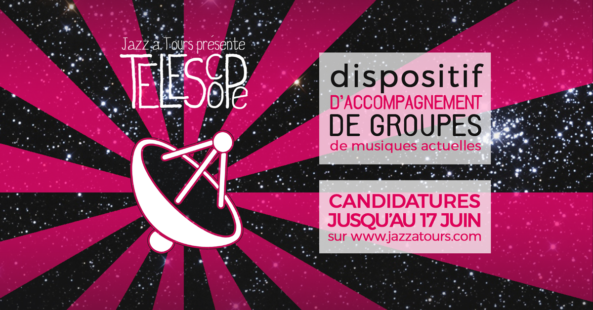 Jazz à Tours a lancé l'appel à candidatures pour le dispositif Télescope, qui accompagnera quatre groupes de la Région Centre-Val de Loire dans leur projet artistique et dans sa diffusion. Des candidatures ouvertes jusqu'au 17 juin...