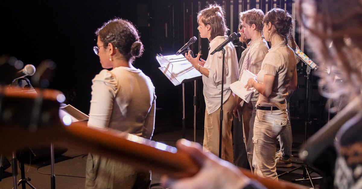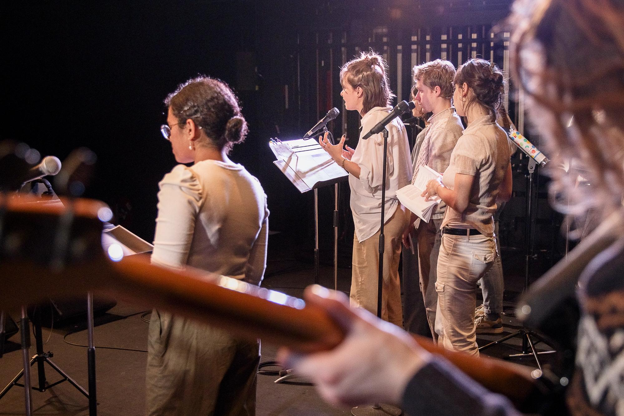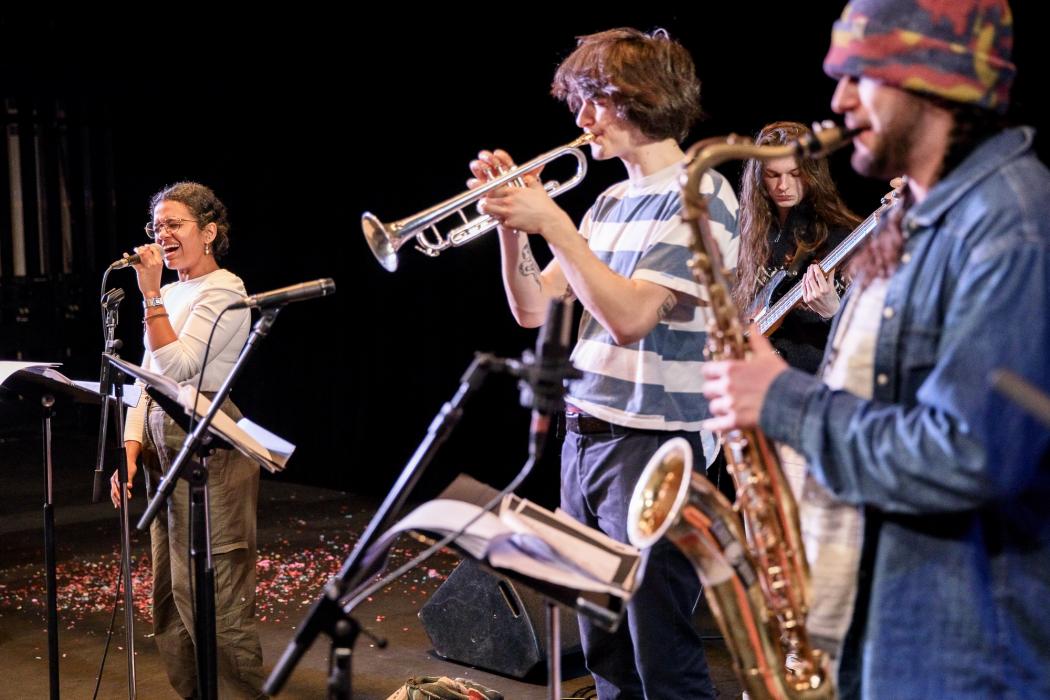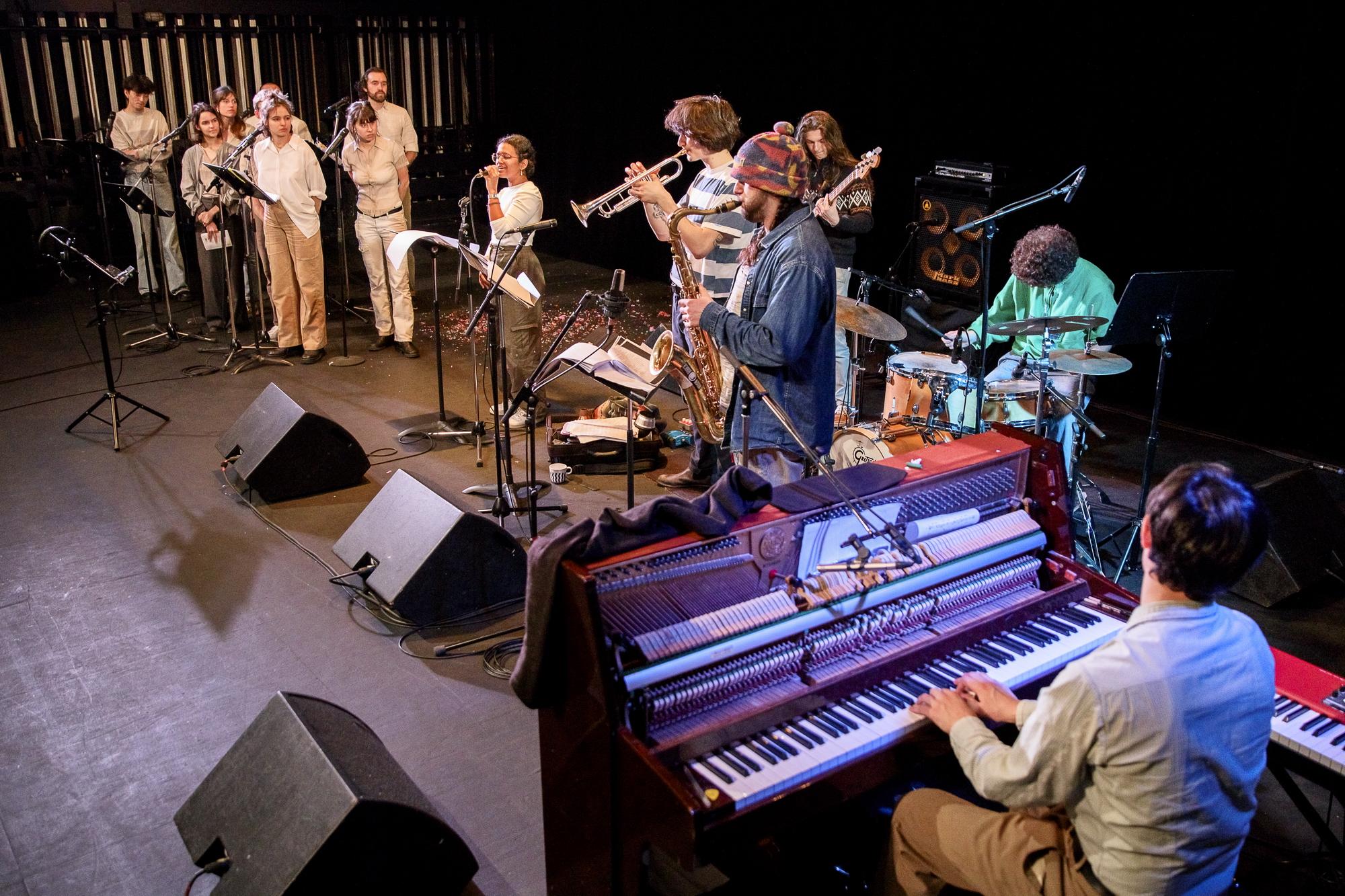 Suite à une semaine de résidence centrée sur les textes de Georges Perec, les musicien.nes du DEM jazz de Jazz à Tours et les comédien.nes de la classe d'Art dramatique du CRR ainsi que de la troupe du JTRC du Théâtre Olympia se sont réunis sur scène pour transcender les frontières entre musique et théâtre. Une performance singulière et captivante qui témoigne du talent des jeunes artistes impliqués.