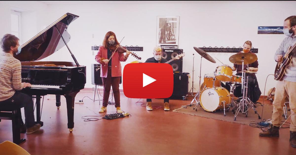 Yohna Lalanne au violon, Léopaul Costa Piallat à la guitare, Paul Bureau au piano, Rémy Rouland à la basse et Paolig Le Coaguen à la batterie nous jouent « Carlotta’s portrait » de Bernard Hermann.