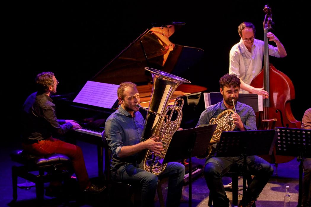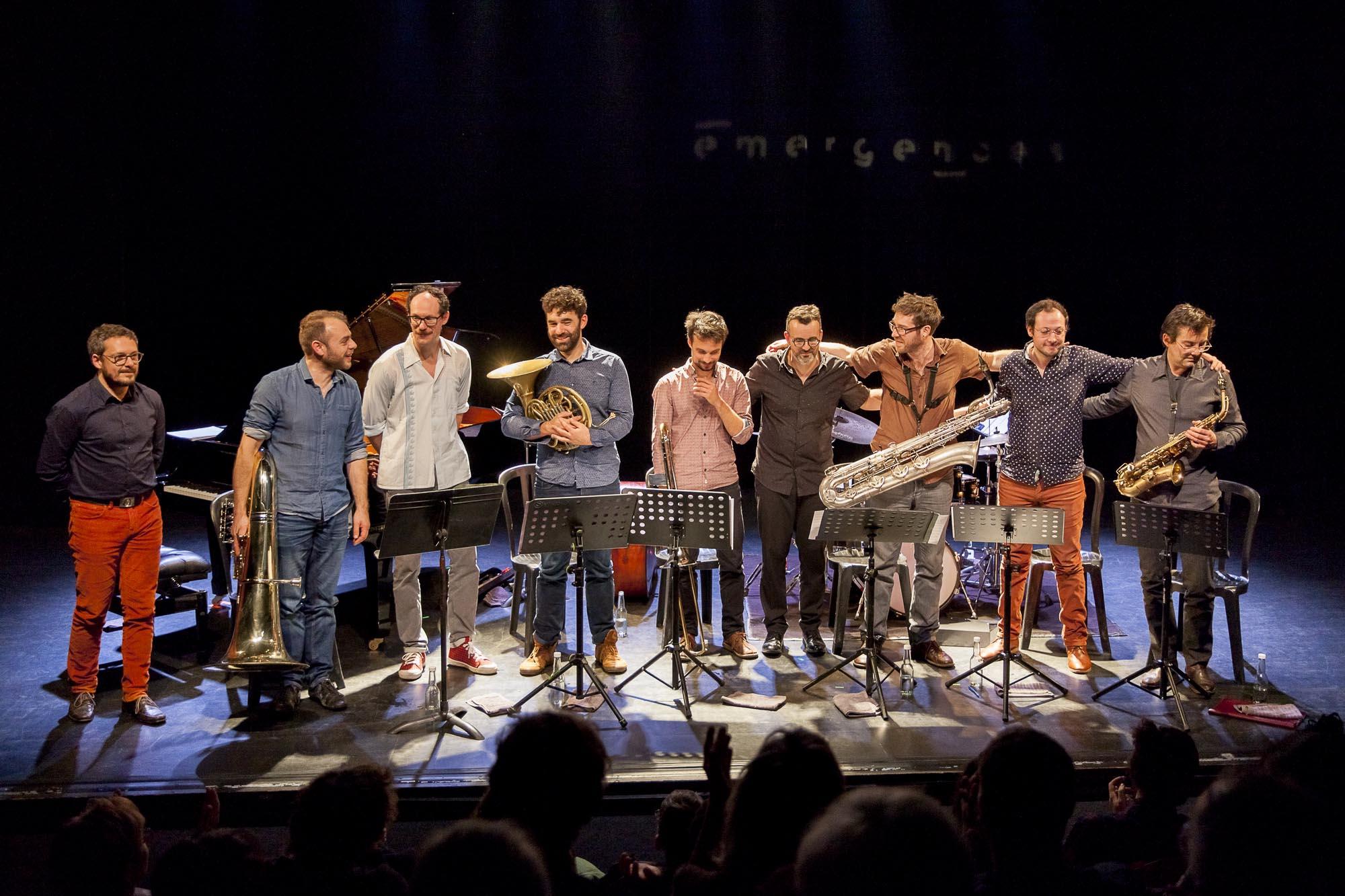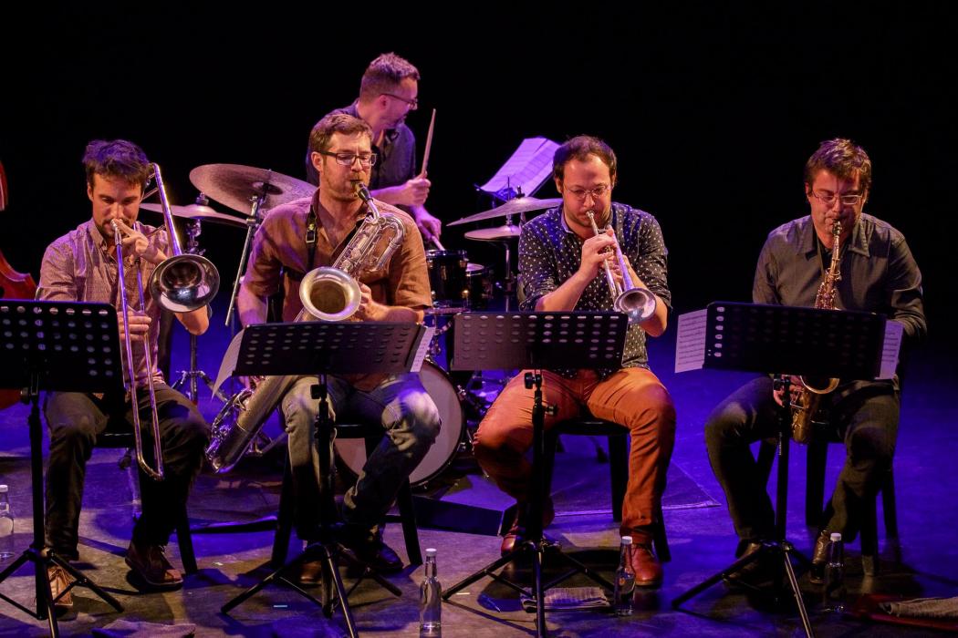 Photos de Rémi Angeli Avec : Rémi Dumoulin saxophone alto ; Jean-Baptiste Réhault saxophone baryton ; Quentin Ghomari trompette ; Benjamin Auger cor Aurélien Richard tuba ; Alexis Persigan trombone ; Cédric Piromalli piano ; Ivan Gelugne contrebasse ; Steven Daviet batterie