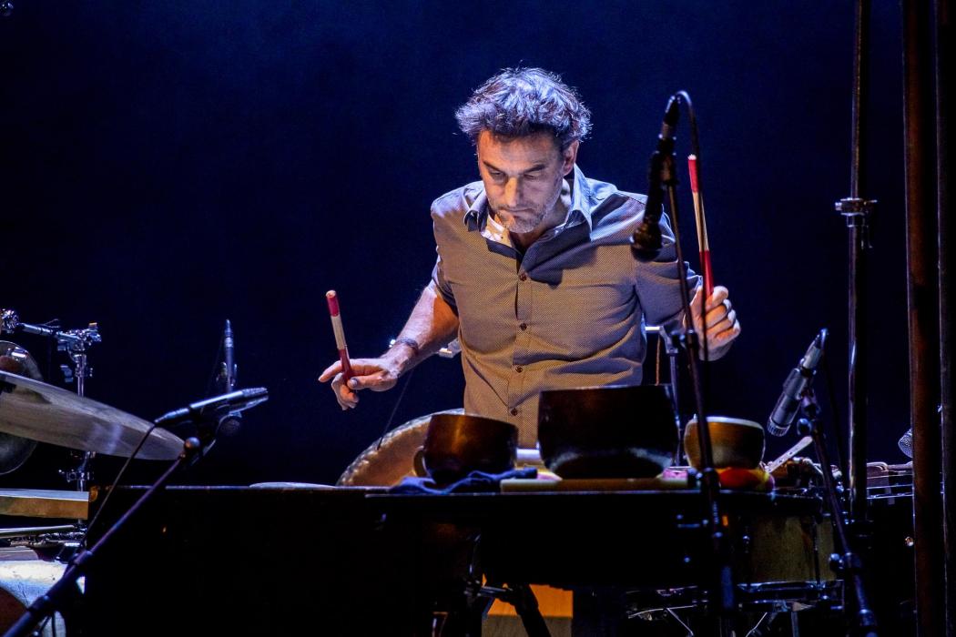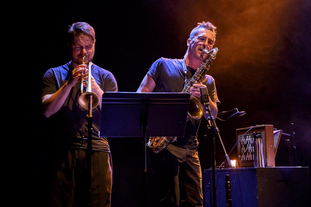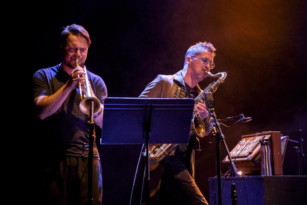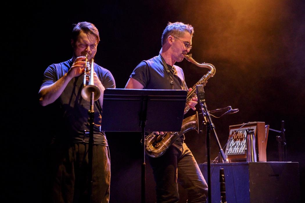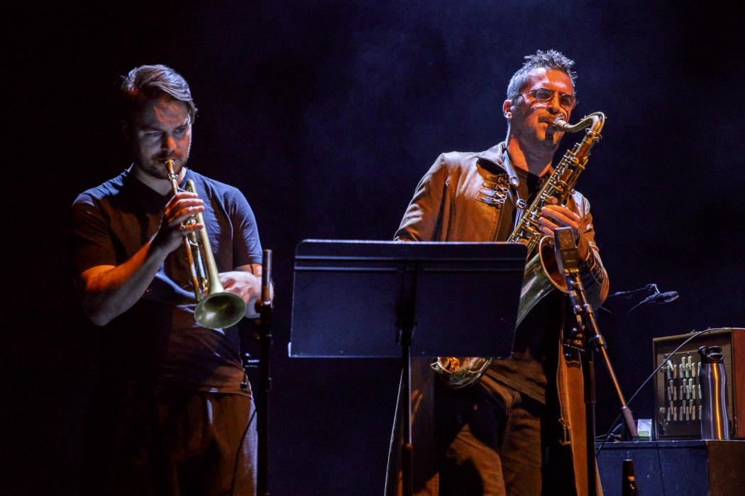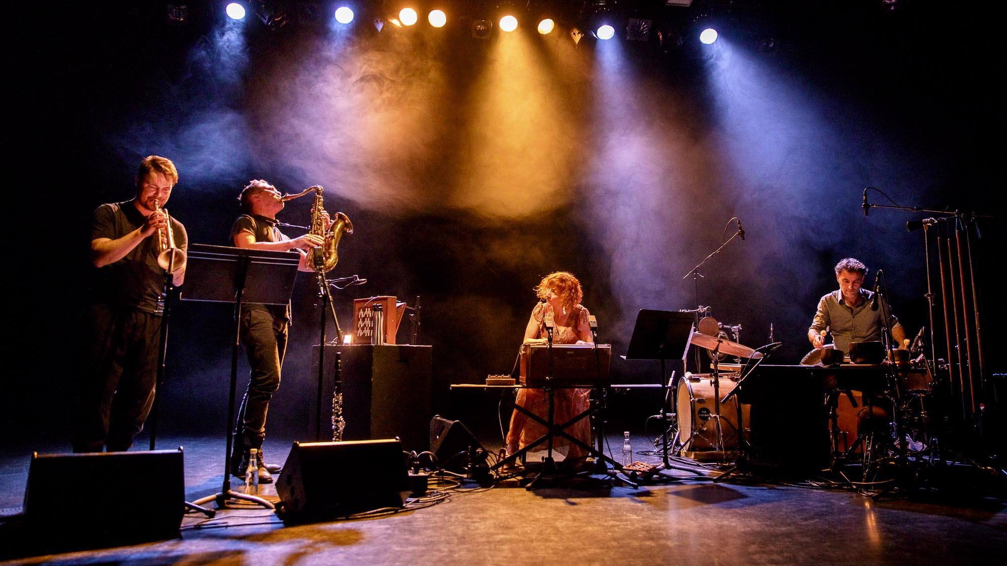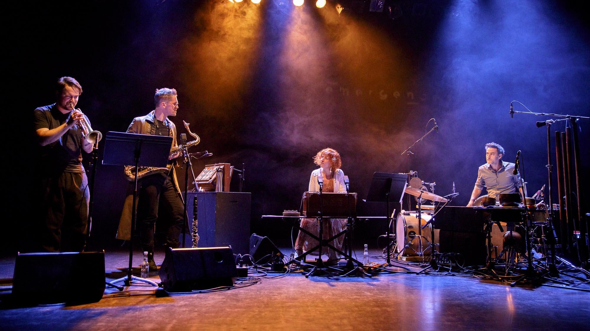Photos de Rémi Angeli, avec Sylvain Rifflet, saxophones, Clarinettes, et Shruti-Box - Verneri Pohjola, trompette - Sylvain Lemêtre, percussions - Sandrine Marchetti harmonium.